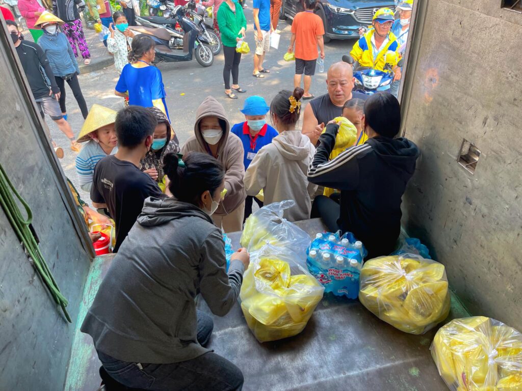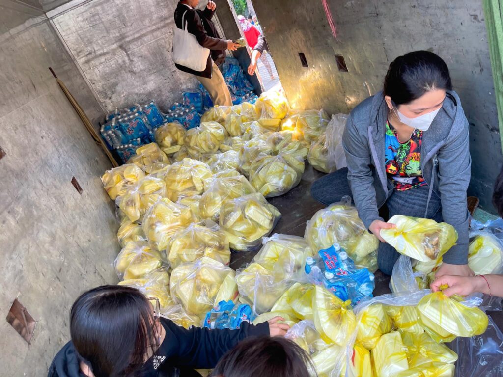 Phục vụ 1000 suất ăn trưa các cô chú công nhân lao động, người bán vé số, người vô gia cư.