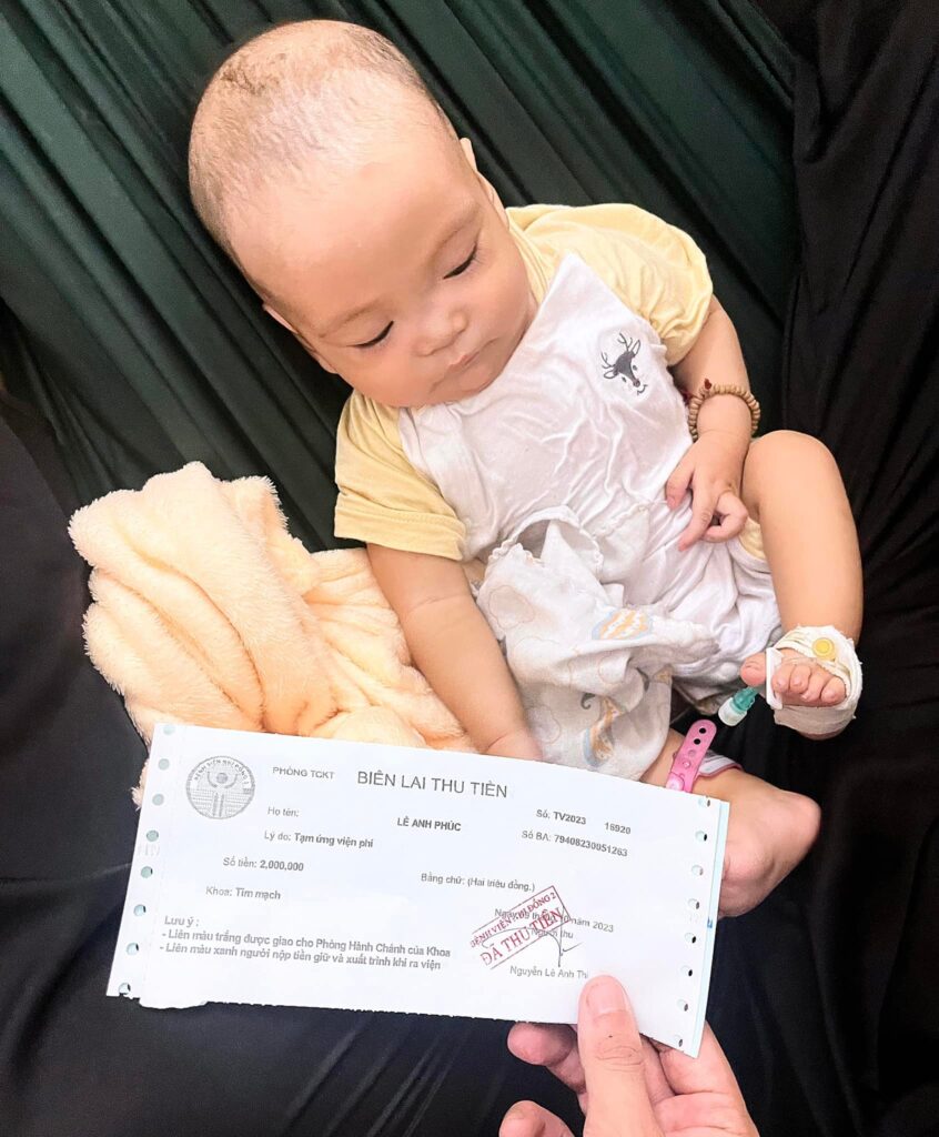 Sau hơn 2 tháng đồng hành cùng gia đình bé Phúc điều trị viêm phổi tại Bệnh viện Nhi Đồng. Nhóm Thiện Nguyện Minh Phước đã đến thăm, hỗ trợ số tiền 70.000.000 đồng để bé Phúc được chuyển viện, tiến hành phẩu thuật và điều trị hậu phẩu tại Viện Tim Thành Phố.