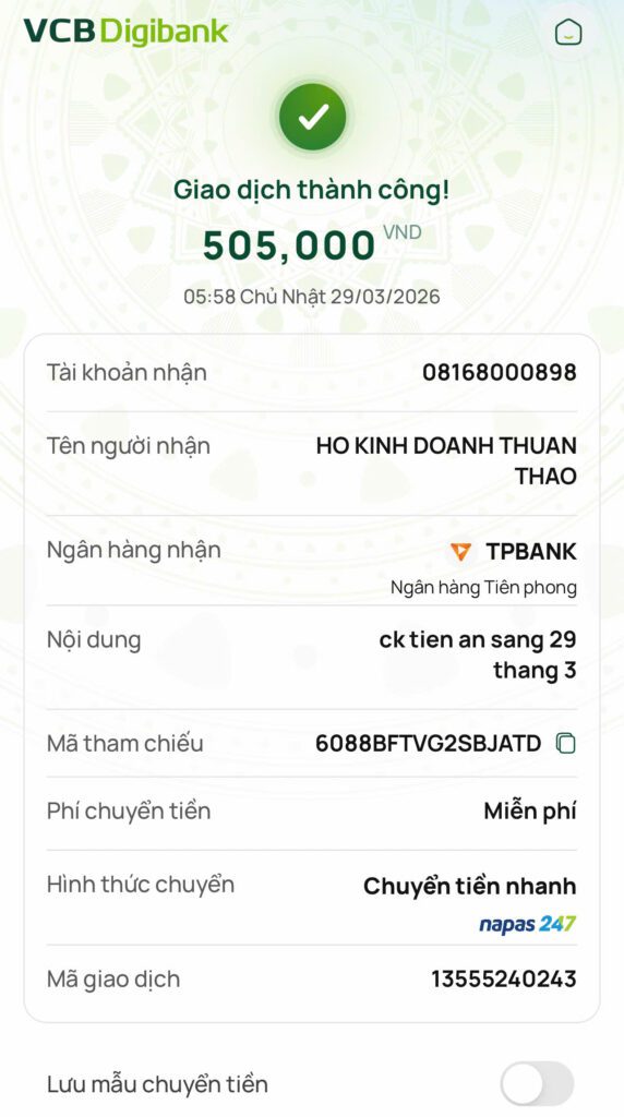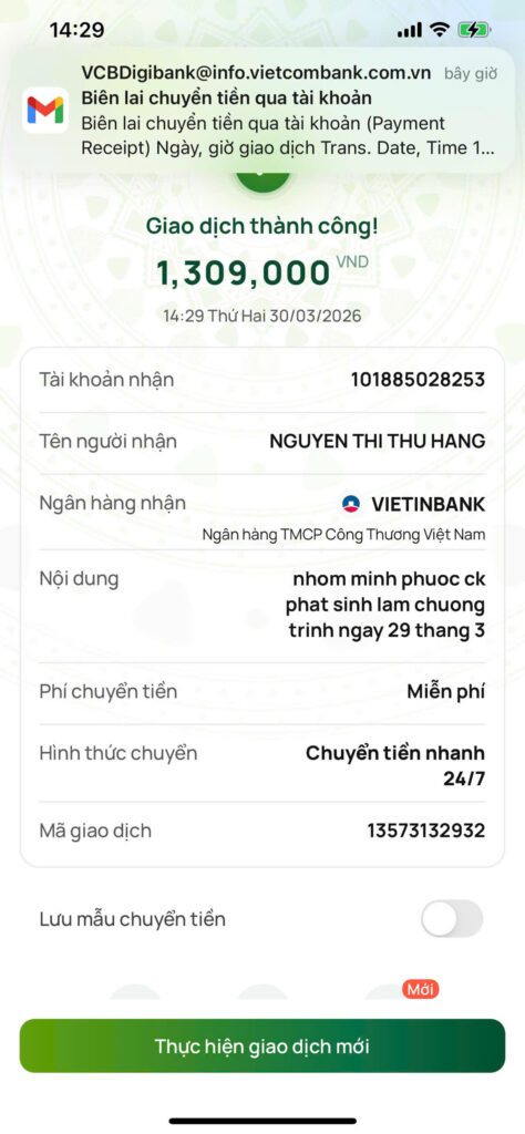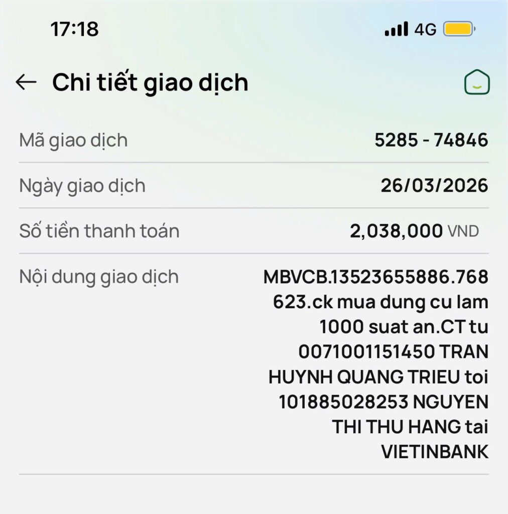 ( Đây là STK được dùng cho thực hiện xây dựng công trình và vận hành dự án. Sao kê được cập nhập 24/7 tại App “Thiện Nguyện” MB Bank )