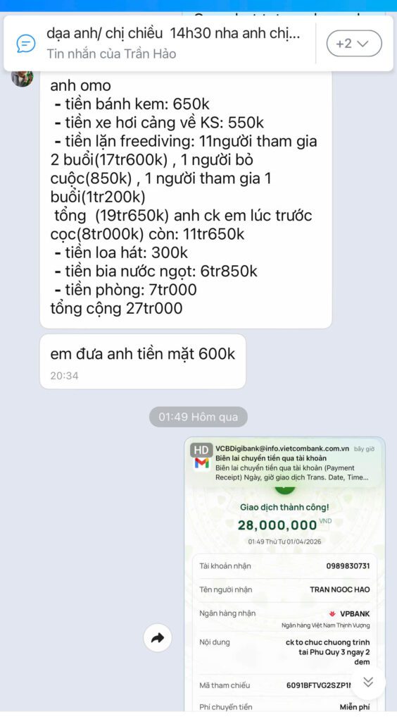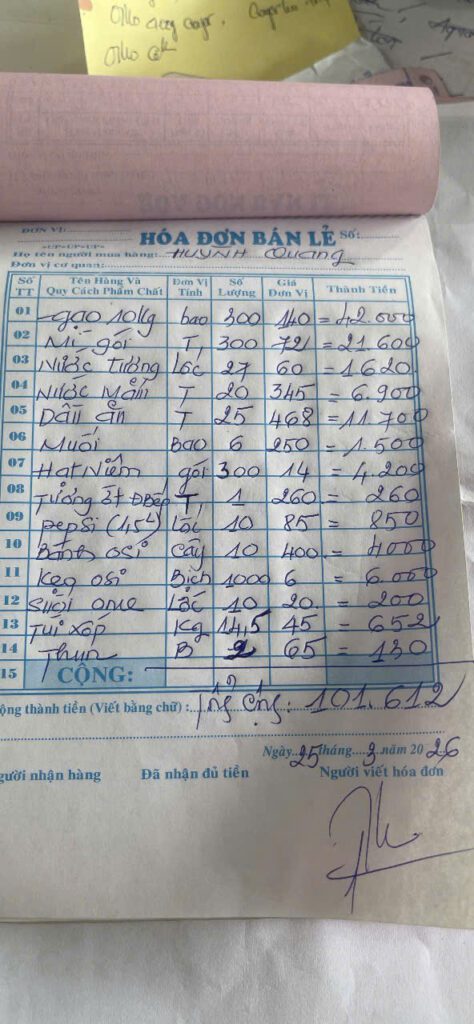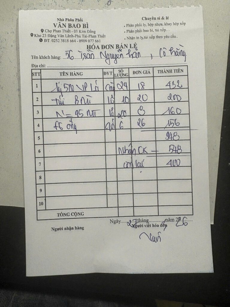 Cập nhập hóa đơn / bill thanh toán (phần lớn các mặt hàng và các hoạt động được phối hợp thực hiện cùng chị Thu Hằng bên Hội Chữ Thập Đỏ tỉnh Lâm Đồng và bạn Trần Hảo bên công ty du lịch tại Phú Quý).