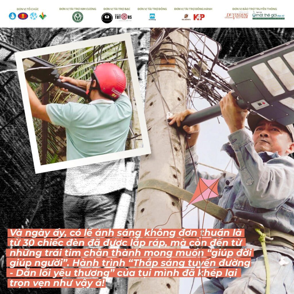– Thực hiện chương trình THẮP TUYẾN ĐƯỜNG – SÁNG TƯƠNG LAI, xây lắp 30 trụ đèn giao thông cho bà con tại ấp Phủ, xã Tân Phong, huyện Thạnh Phú, tỉnh Bến Tre.
