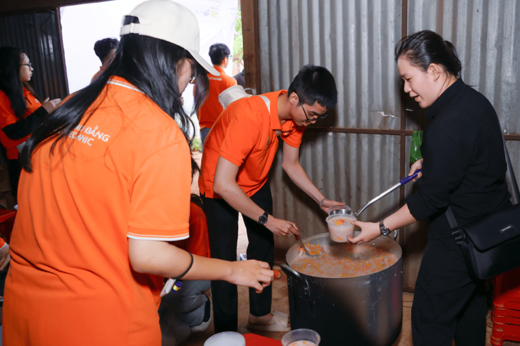 • 200 suất cháo nóng tự tay sinh viên nấu
