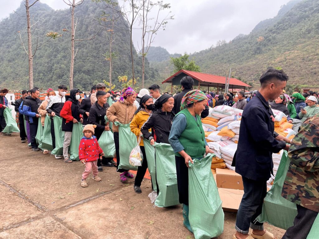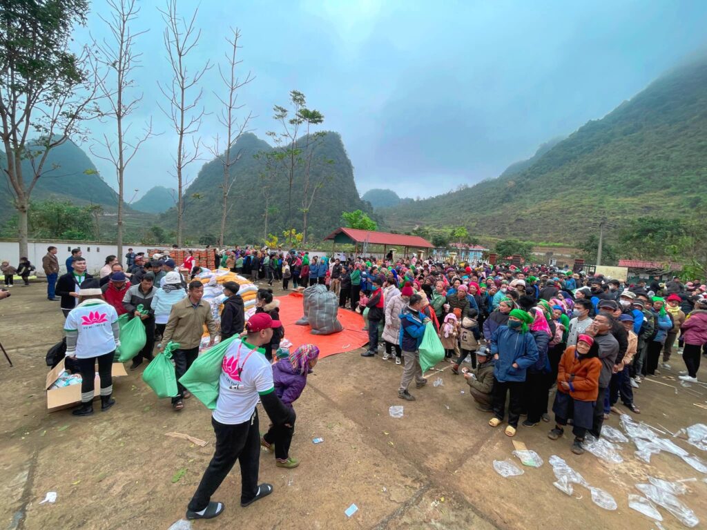 – Hoàn thành hỗ trợ nhu yếu phẩm/lương thực cho toàn bộ 580 hộ gia đình người dân tộc tại xã Hồng Sỹ, huyện Hà Quảng, tỉnh Cao Bằng. Mỗi hộ nhận quà hỗ trợ khoảng 600.000 đồng bao gồm: 10kg gạo, 1 thùng mì, 1 chai dầu ăn, 1 chai mắm, 1 bịch đường, 1 bịch muối, 1 bịch bột ngọt, 1 chai dầu gió, 1 cái mền, 1 cái khăn.