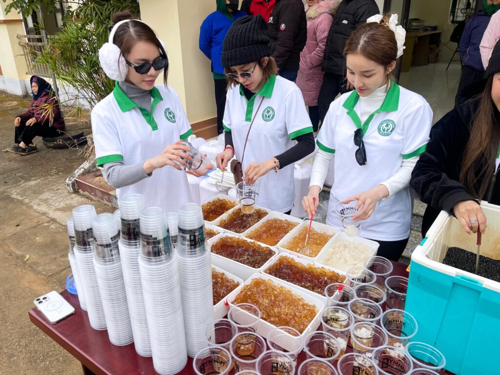 – Hoàn thành trao tặng 750 phần quà cho trẻ em, mỗi bé nhận được: : 2 bộ đồng phục học sinh,1 túi quà bánh/kẹo/sữa, 1 đôi dép, 1 áo lạnh, 1 ly trà sữa.