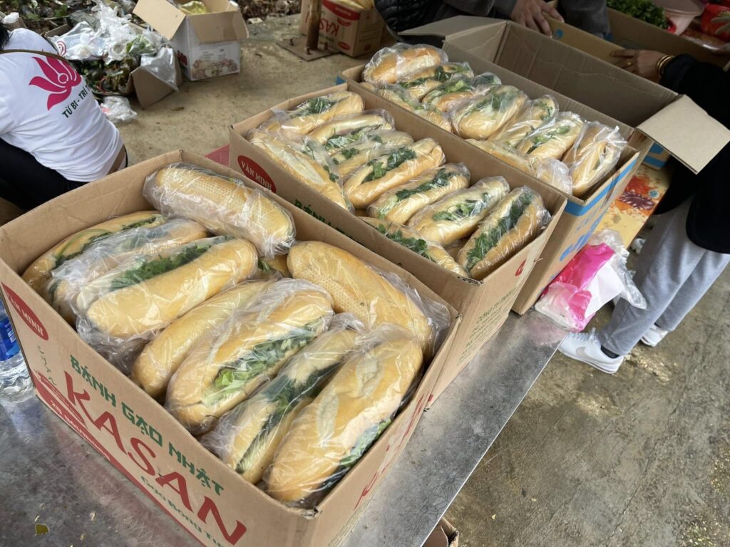 – Phục vụ 1500 suất ăn bánh mì thịt + nước ngọt cho cho người dân đến tham gia nhận quà.