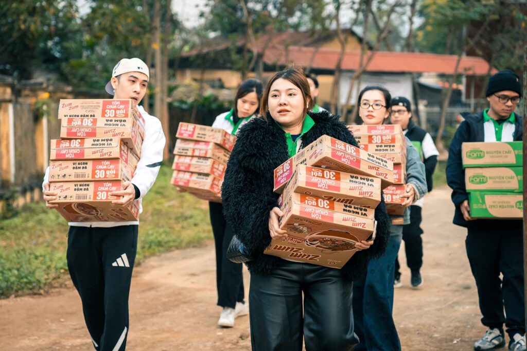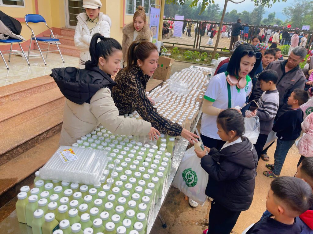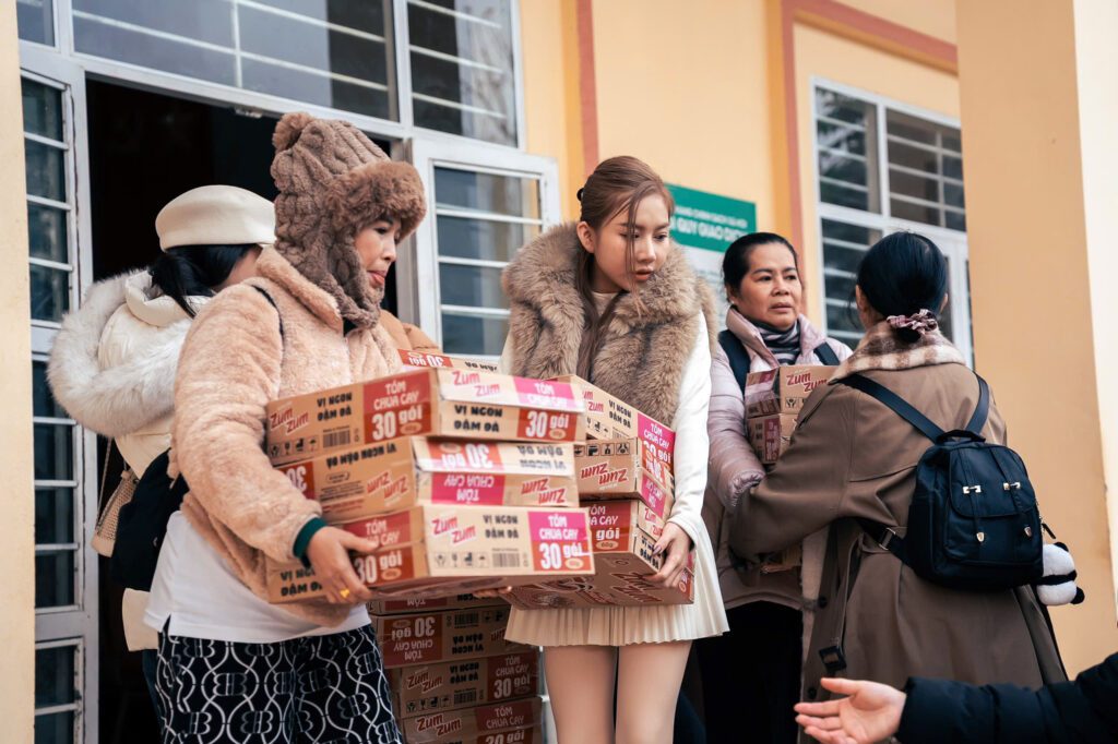 Bao gồm các vật phẩm như: áo ấm, ba lô đi học, 10 quyển tập, 15 cây viết, bộ dụng cụ học tập, dép, túi quà bánh/kẹo/sữa, trà sữa trân châu, gấu bông và quần áo cũ/mới…