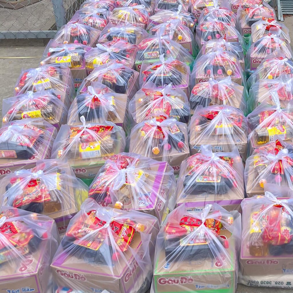 – gửi tặng cho tập thể y bác sĩ đang công tác tại Trung tâm y tế quận Bình Tân 15 phần quà Tết, mỗi phần quà bao gồm: 2 thùng nước ngọt, bánh-kẹo-mứt.
