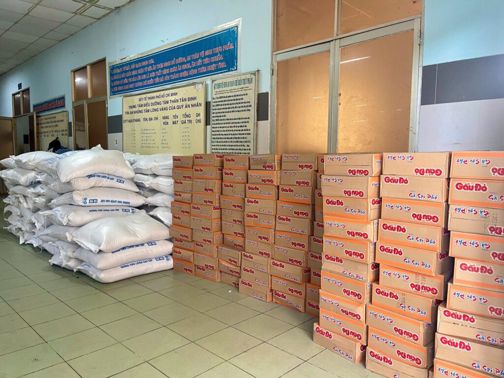 – Trao tặng 4 tấn gạo và 400 thùng mì gói cho trung tâm.