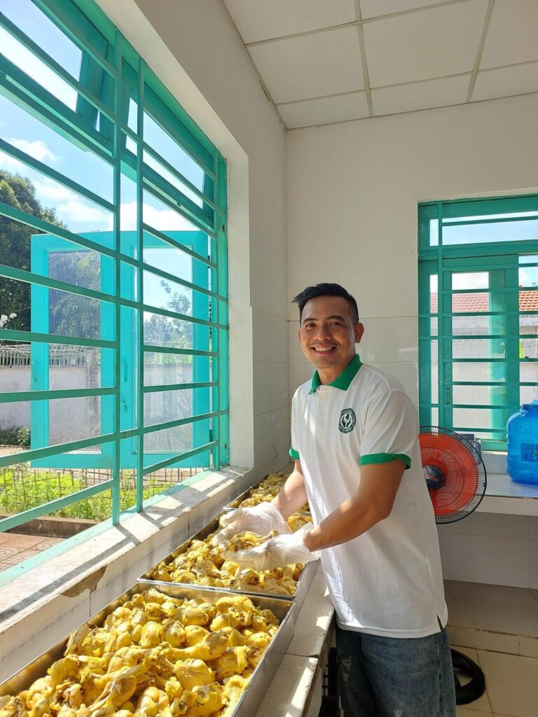 Hoàn thành nấu 600 suất ăn cơm gà Hải Nam phục vụ bữa trưa cho toàn thể bệnh nhân. Trao tặng 500 phần quà cho các bệnh nhân, mỗi phần quà bao gồm: 1 túi bánh ngũ cốc, 1 cây sữa ông thọ, 1 túi bánh sanwik, 1 túi kẹo sữa, 1 chai nước tương, băng vệ sinh cho bệnh nhân nữ, 5 gói mì, 5 gói cháo thịt bằm, 5 bịch sữa đậu nành, 5 gói cafe. Hỗ trợ 130 ấm nấu nước nóng cho 130 phòng bệnh.