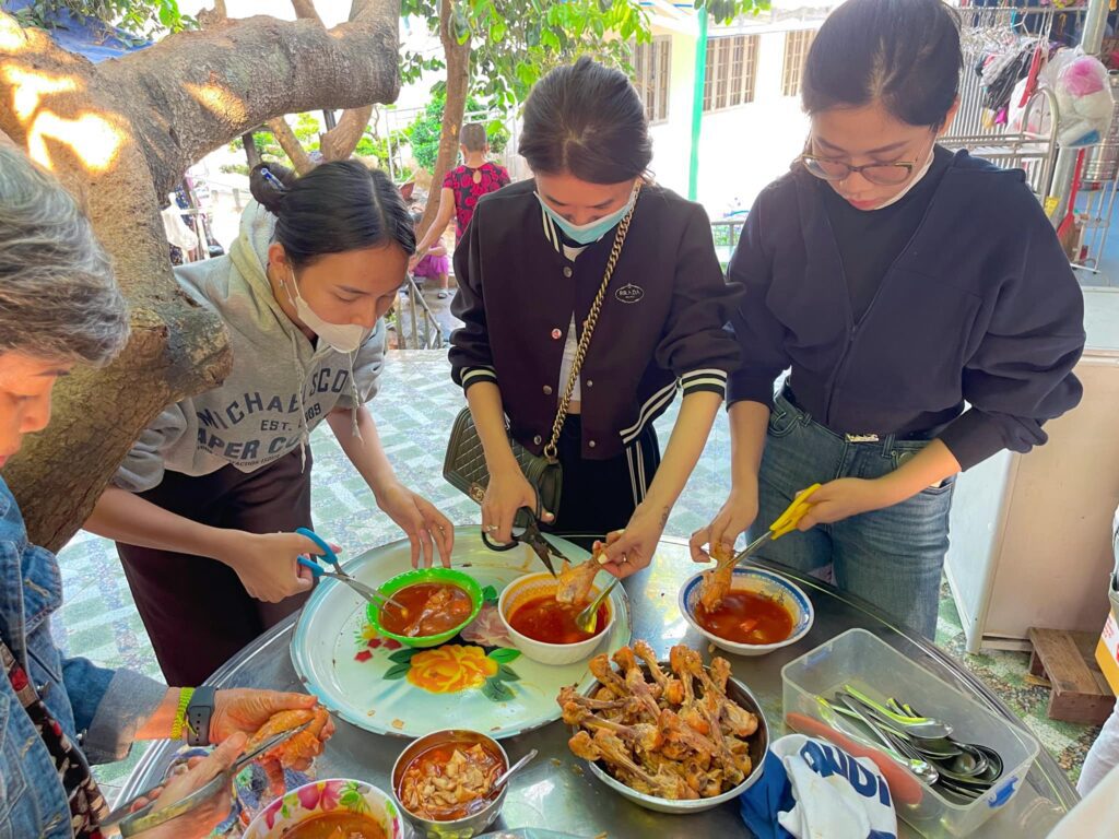 * Phục vụ 270 suất ăn trưa (đùi gà lagu – bánh mì- nước ngọt) cho toàn mái ấm.