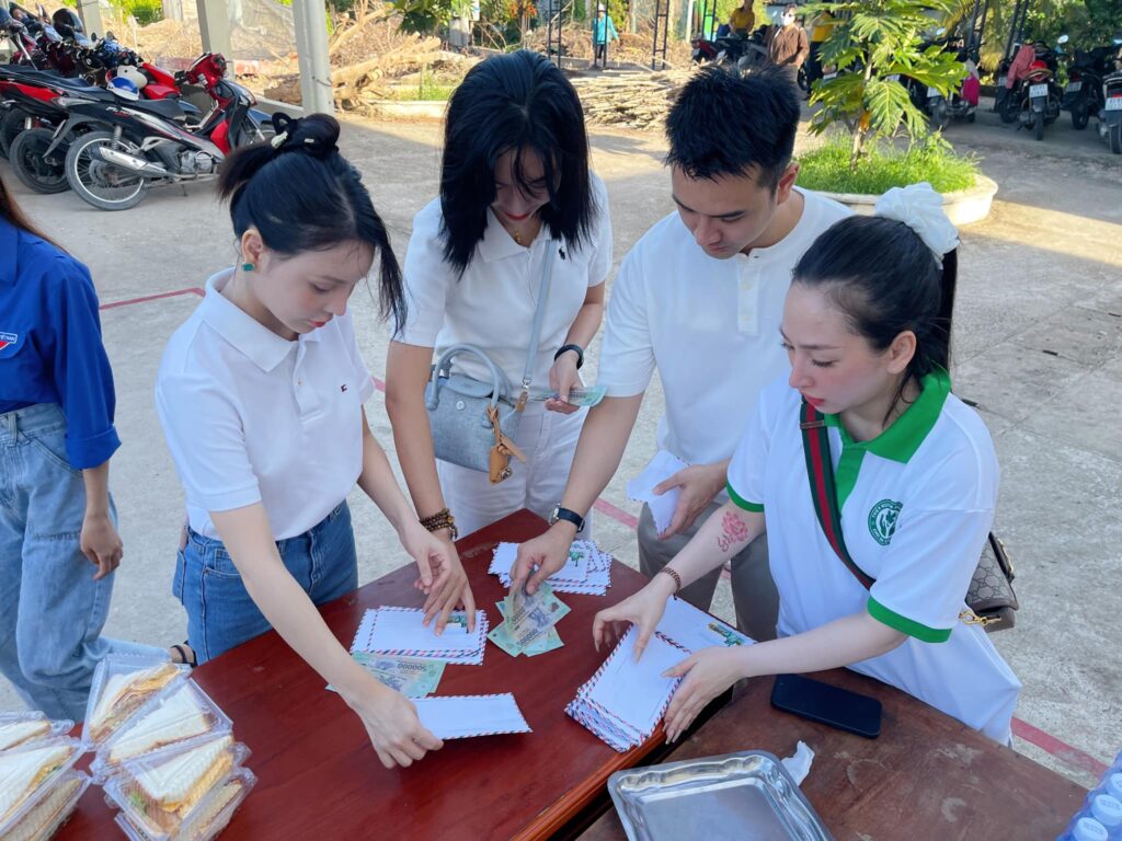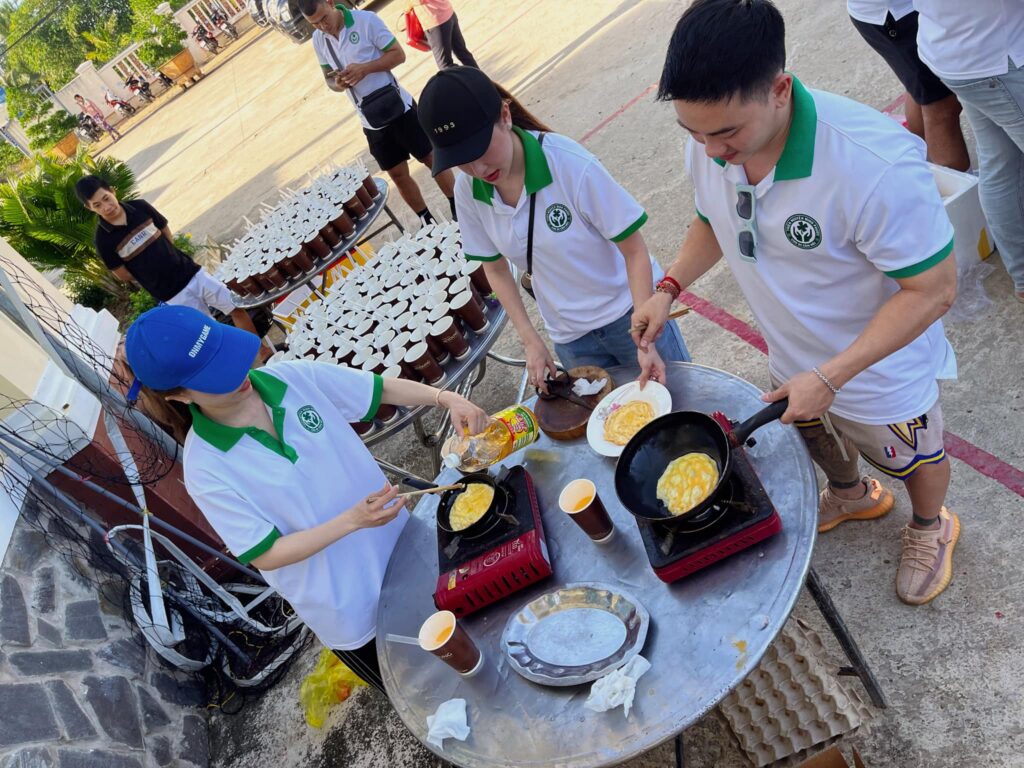Tại buổi lễ trao học bổng, Nhóm Minh Phước tổ chức nấu ăn, phục vụ ăn trưa, trà sữa, bánh-kẹo cho các bé và phụ huynh đến tham gia.