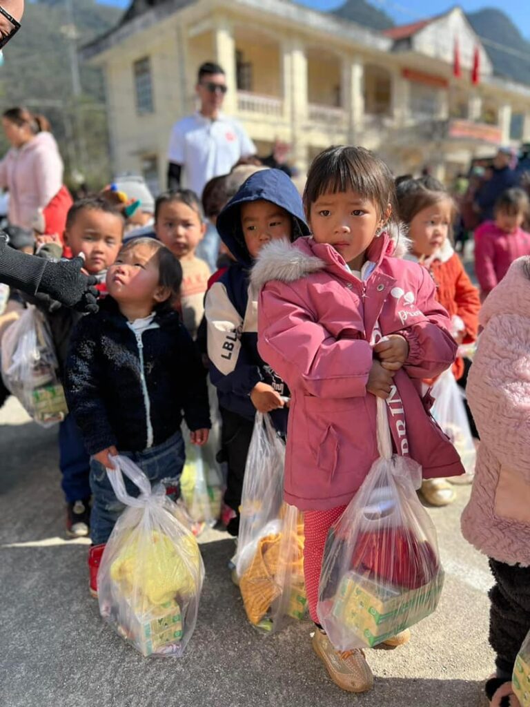 – Trao tặng 884 phần quà trẻ em, bao gồm: 1 áo lạnh, 1 đôi dép, 6 hộp sữa, kẹo, bánh.