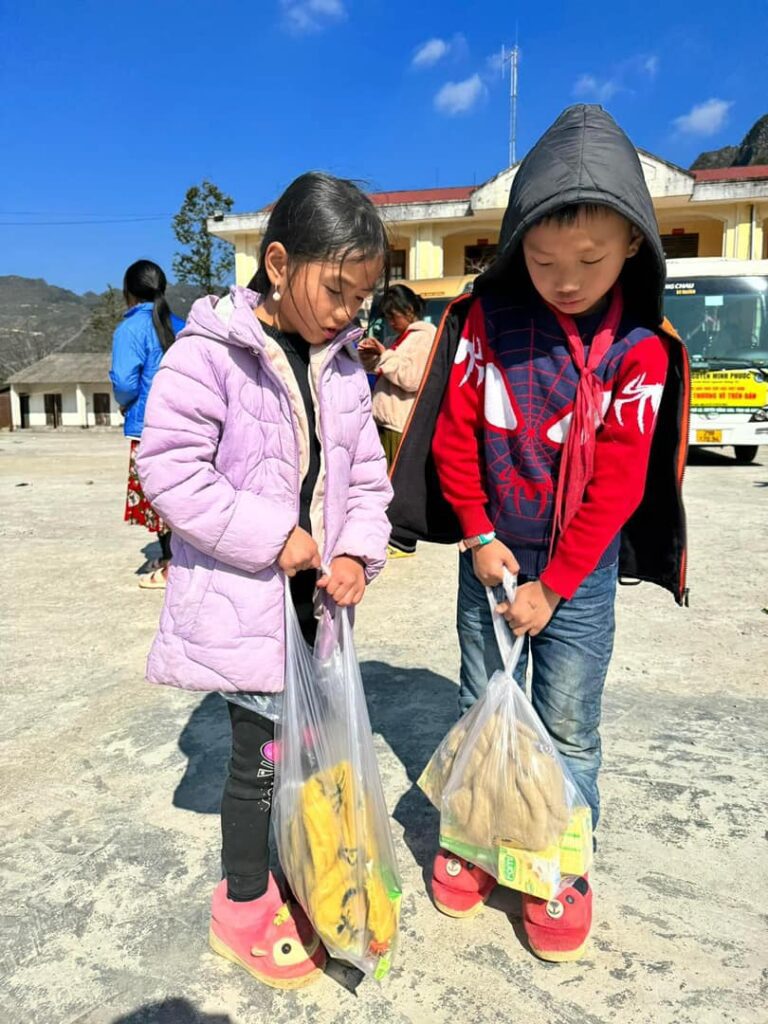 Thật sự hạnh phúc và ấm lòng khi 73 con người từ mọi miền tổ quốc cùng hướng về Hà Giang trong tháng 12 này, hỗ trợ 635 phần quà cho 500 hộ dân trên toàn xã Phố Là huyện Đồng Văn tỉnh Hà Giang / trao tặng 1000 phần quà cho tất cả trẻ em trong xã / nấu 2000 suất ăn phục vụ cho bà con đến nhận quà / trao tặng 116 phần quà và 116 phần học bổng cho trẻ em vùng cao / hỗ trợ dụng cụ học tập cho các điểm trường trong xã / đồng hành cùng quỹ Nhân Minh xây sửa điểm Trường mầm non Cốc Mạ thuộc xã Quản Bạ.